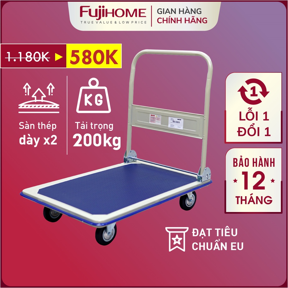 Xe đẩy hàng 4 bánh gấp gọn 200kg Nhập Khẩu Fujihome, bánh cao su không ồn, xe kéo hàng gấp gọn đa năng giá rẻ