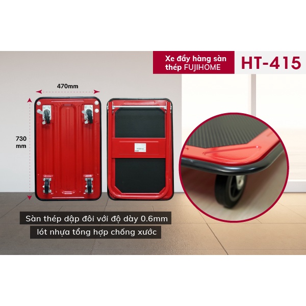 4.🌟 XE ĐẨY HÀNG 4 BÁNH SÀN THÉP HT-415 (TẢI TRỌNG 150KG)