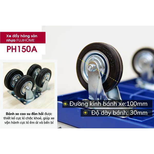 🌟1. XE ĐẨY HÀNG 4 BÁNH SÀN NHỰA PH150A (TẢI TRỌNG CHỞ <100KG)