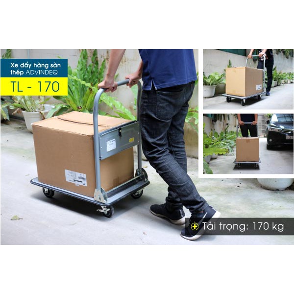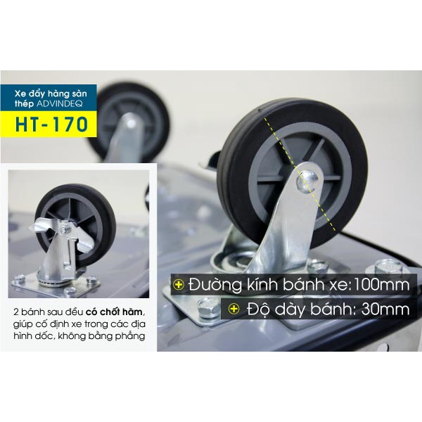 🅾️ 2. Xe đẩy hàng 4 bánh sàn thép ADVINDEQ HT-170 ( SÀN SẮT)
