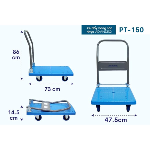 🅾️ 1. Xe đẩy hàng sàn nhựa ADVINDEQ PT-150 (SÀN NHỰA)