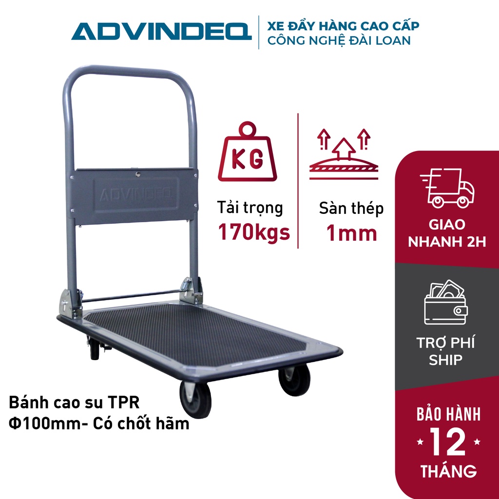 Xe đẩy hàng 4 bánh gấp gọn 170kg nhập khẩu ADVINDEQ TL-170, bánh xe chống ồn chốt, xe kéo hàng xếp gọn đa năng sàn sắt