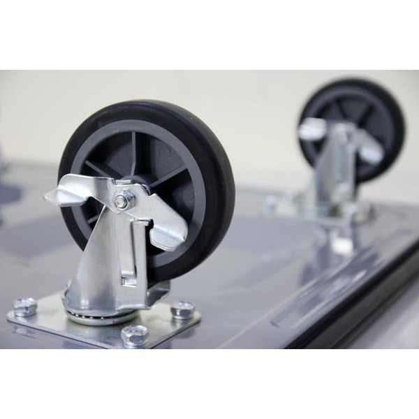- Thiết kế 4 bánh đẩy hàng hóa nhẹ nhàng, đặc biệt 2 bánh sau đều có chốt hãm, giúp cố định xe trong các địa hình dốc, không bằng phẳng.