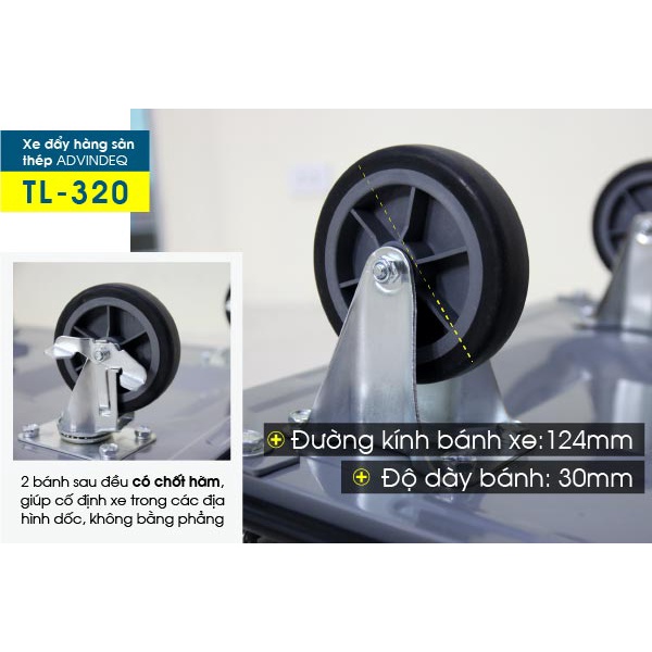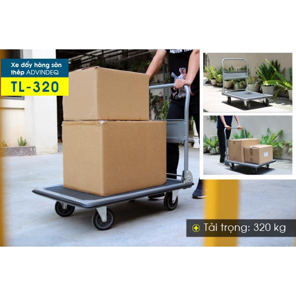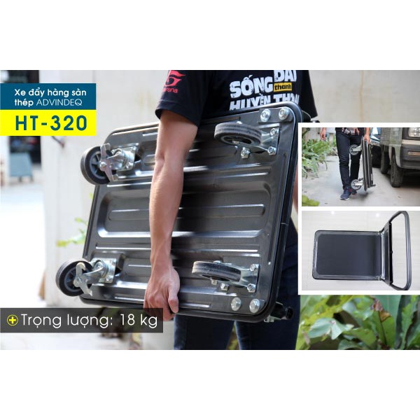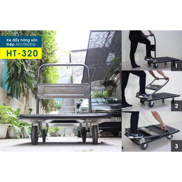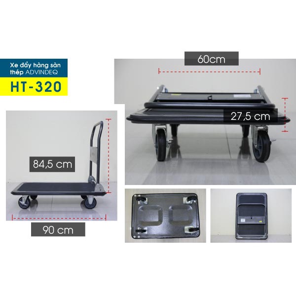 Xe đẩy hàng 4 bánh sàn thép phủ nhám ADVINDEQ HT-320, tải trọng lên tới 320kg