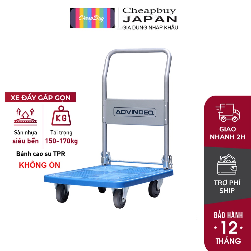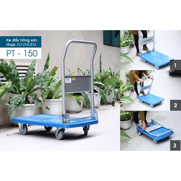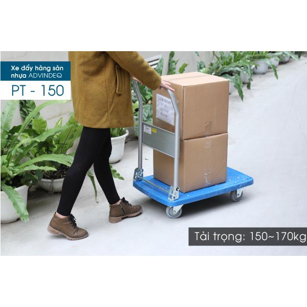 - Xe đẩy hàng sàn nhựa Advindeq PT-150 chính hãng mang đầy đủ các đặc tính nổi trội thương hiệu Advindeq Đài Loan. Kích cỡ nhỏ nhắn chỉ 7.5kg nhưng khả năng chịu tải lên tới 150 ~ 170kg, thiết kế chắc chắn từ thép cao cấp, an toàn và tính cơ động rất cao, hơn nữa còn có thể gấp gọn nhằm tiết kiệm không gian lưu trữ. Xe đẩy hàng sàn nhựa PT-150 là một sự lựa chọn hoàn hảo cho các văn phòng, cửa hàng, nhà kho,…