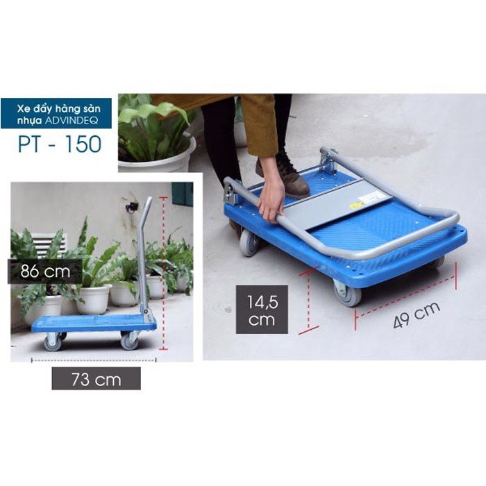 Nhà cửa & Đời sống > Dụng cụ & Thiết bị tiện ích > Xe đẩy || Xe đẩy hàng 4 bánh sàn nhựa ADVINDEQ PT-150Còn hàng