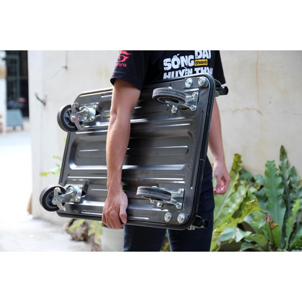 - Xe kéo hàng được thiết kế rất gọn gàng với tấm nhôm đỡ có thể gấp gọn giúp tiết kiệm diện tích khi cất giữ.