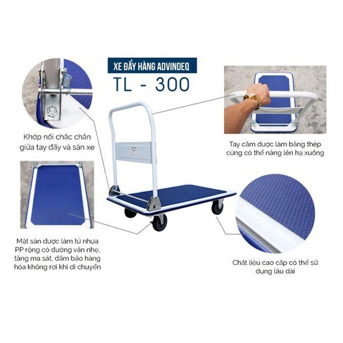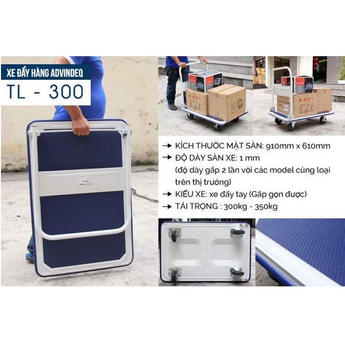 ***THÔNG SỐ KỸ THUẬT CỦA XE ĐẨY HÀNG 4 BÁNH SÀN THÉP ADVINDEQ TL-300***