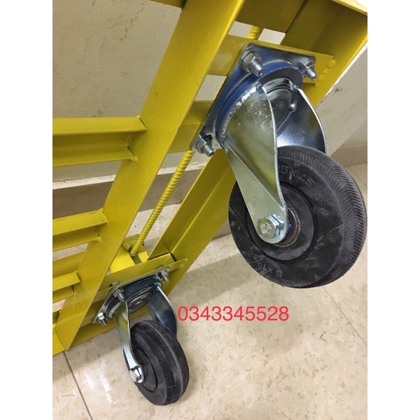 - Bánh xe cao su 125x45 mm giúp xe chạy êm không gây ồn - Càng dầy dặn cứng cáp.