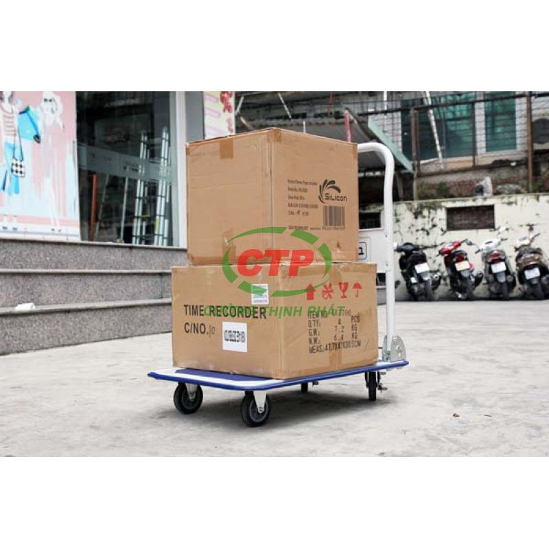 - Mặt sàn xe đẩy hàng thấp thuận tiện cho việc xếp hàng hóa lên sàn xe.