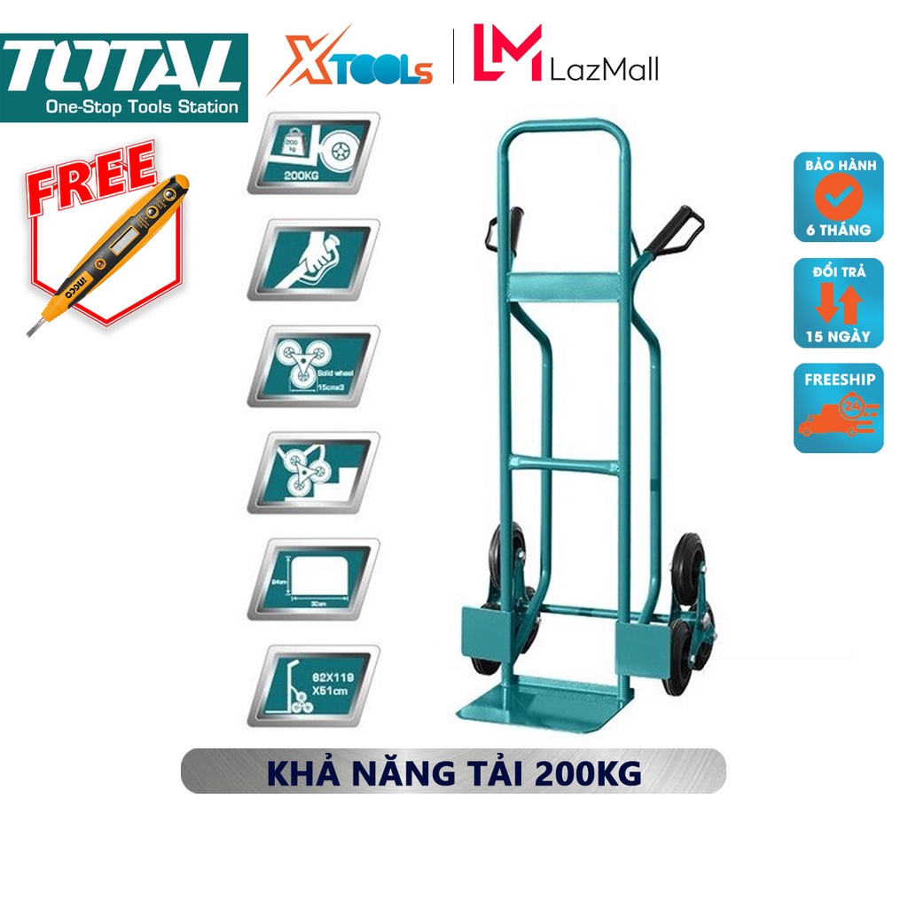 Nhà cửa & Đời sống > Dụng cụ & Thiết bị tiện ích > Xe đẩy || Xe đẩy hàng bằng tay TOTAL THTHT20461 | xe kéo hàng Khả năng tải: 200kg Độ dày khung ống: 1,2 x 25mm Độ dày tấm thép: 3.Còn hàng
