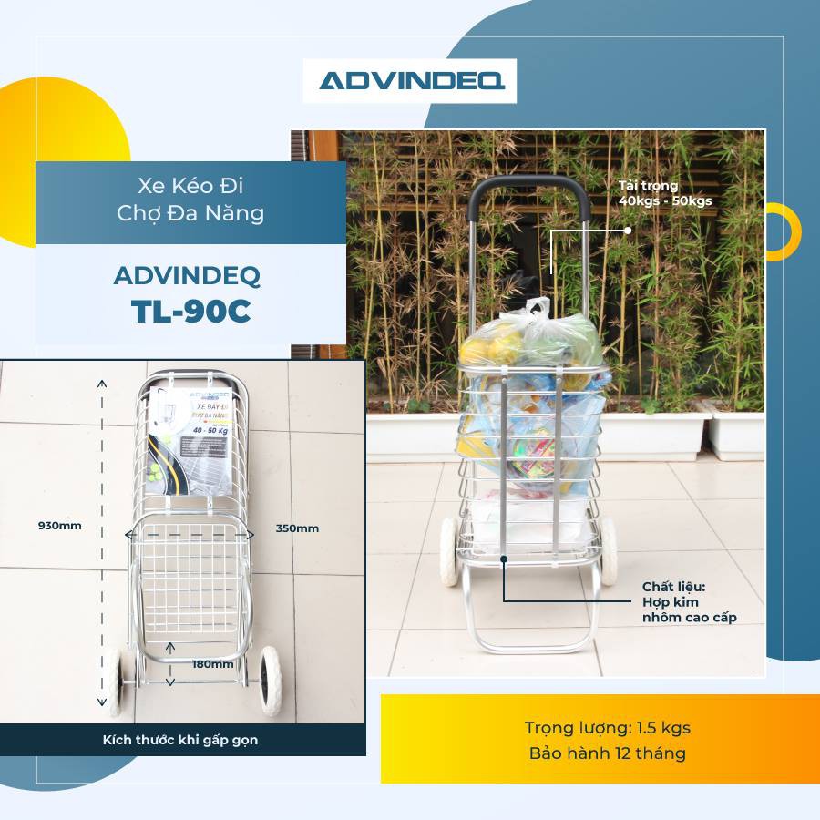 Xe kéo đi chợ siêu thị có giỏ gấp gọn ADVINDEQ TL-90C ( tải trọng chở < 50kg)- chính hãng bảo hành 12 tháng