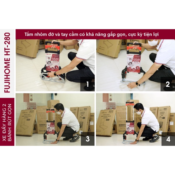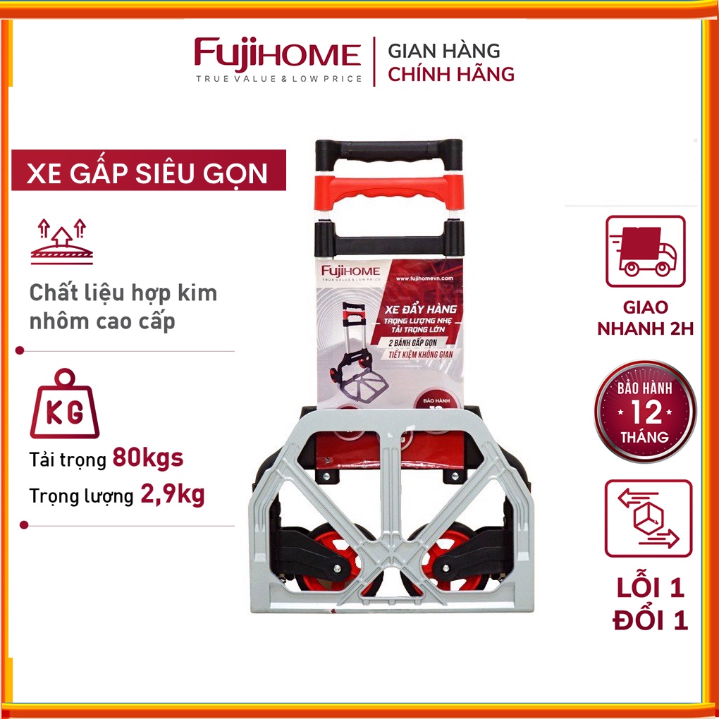 XE KÉO ĐẨY HÀNG GẤP GỌN 2 BÁNH FUJIHOME HT280- CHỞ 80KG -GẤP SIÊU GỌN NHẸ