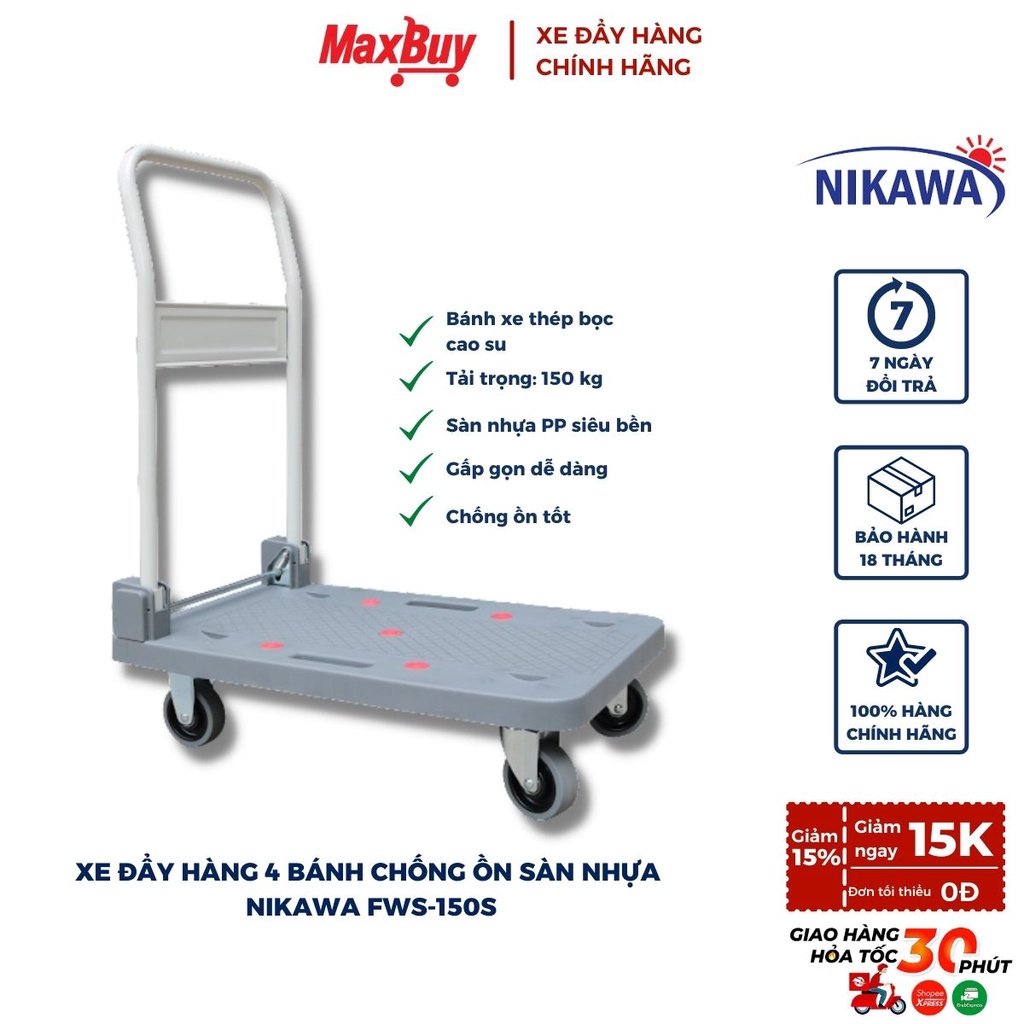 Nhà cửa & Đời sống > Dụng cụ & Thiết bị tiện ích > Xe đẩy || Xe đẩy hàng gấp gọn 4 bánh siêu thị chắc chắn tải trọng 150kg Nikawa bảo hành chính hãng giao hỏa tốc HN FWS-150S MAXBUYCòn hàng