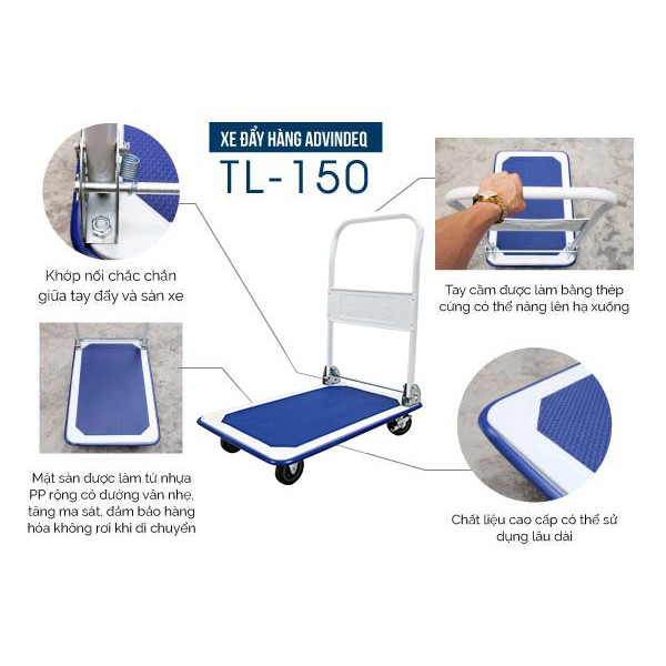 - Xe đẩy hàng ADVINDEQ TL-150 nói riêng và các dòng xe đẩy hàng nói chung là một vật dụng cần thiết khi chúng ta cần di chuyển vật dụng, hàng hóa có trọng lượng lớn, cồng kềnh.