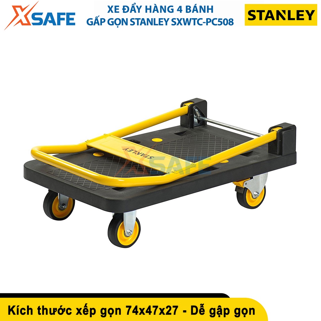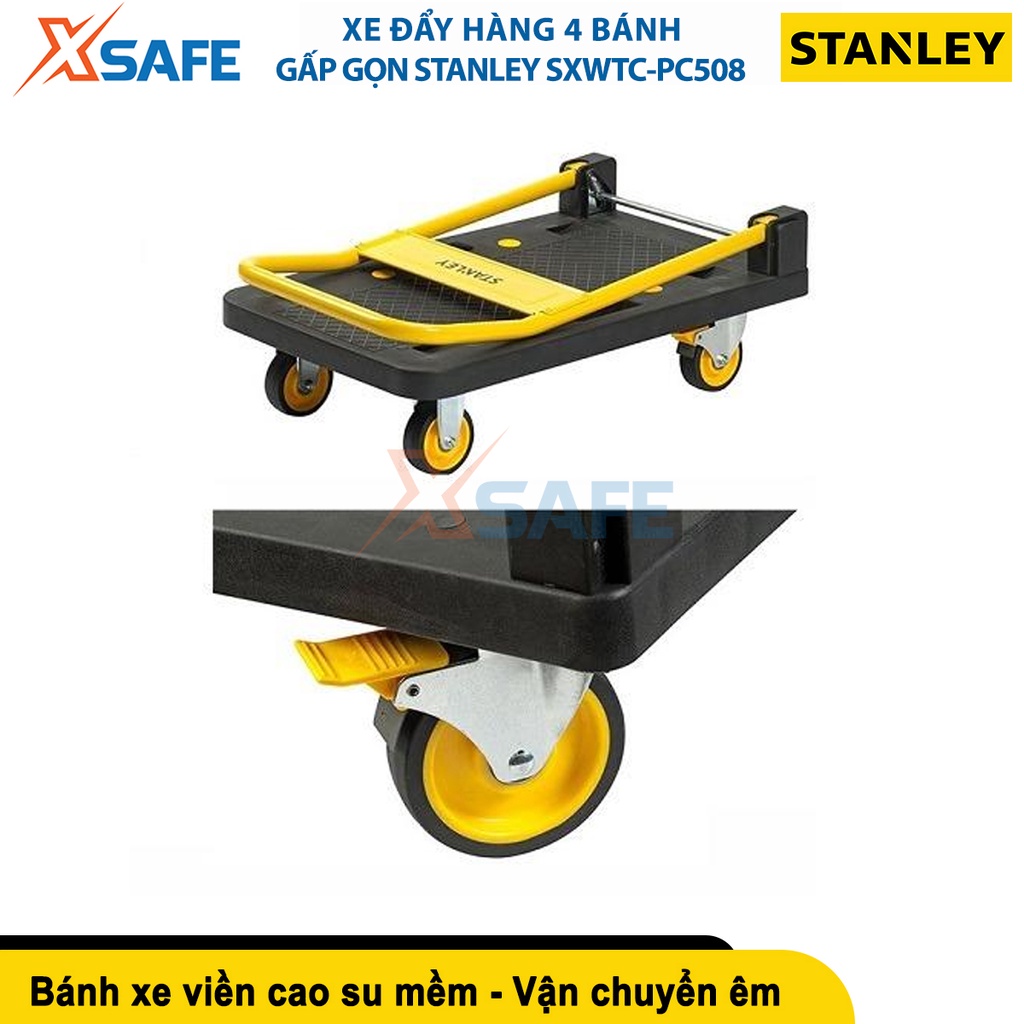 Giới thiệu Xe đẩy hàng gấp gọn 4 bánh STANLEY SXWTC-PC508 tải trọng 150kg, tức thời 160kg, bánh xe bọc cao su - chính hãng - xsafe