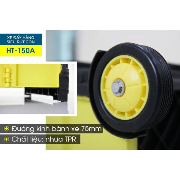 - Xe kéo đi chợ đa năng HT-SP02 được làm từ nhựa PP tổng hợp siêu bền với 2 màu vàng và đen. Giúp chúng ta có thể sử dụng để chở nhiều mặt hàng khác nhau mà sản phẩm vẫn đảm bảo chất lượng. Chỉ cần vệ sinh và lau chùi sau mỗi lần sử dụng là sản phẩm lại trở nên như mới.