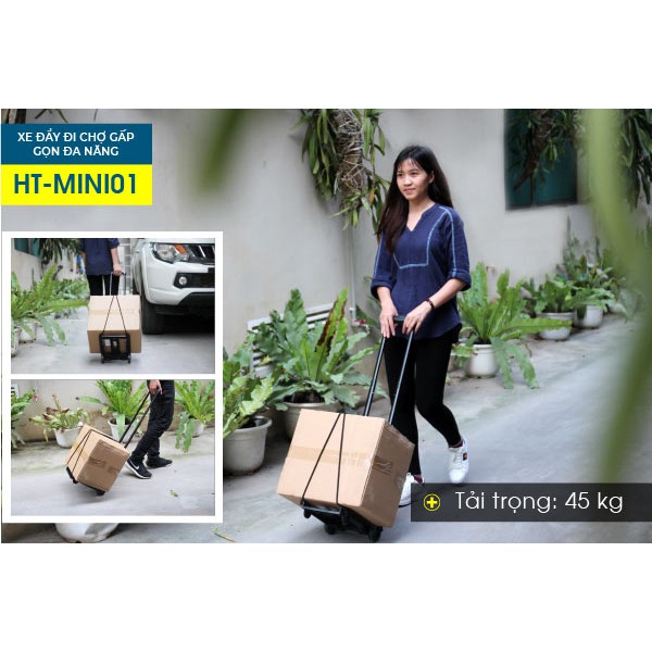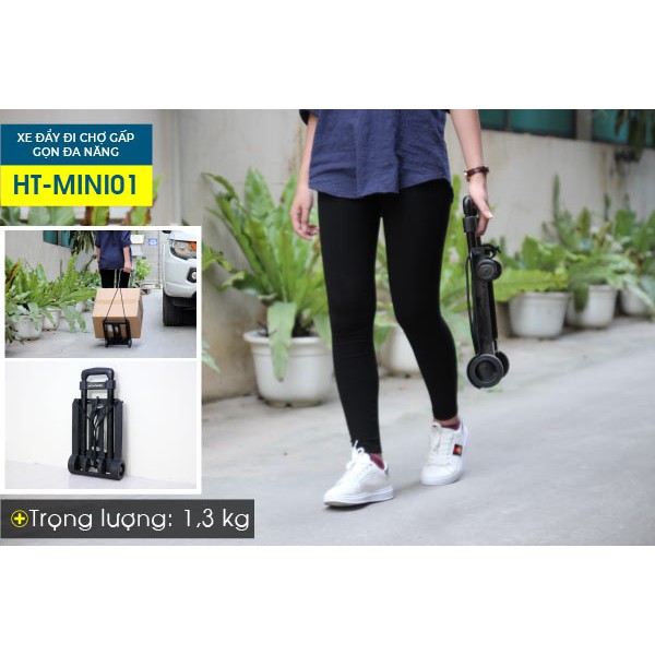 ✅ BẢO HÀNH CHÍNH HÃNG 12 THÁNG - 63 TỈNH✅- Xe đẩy đi chợ gấp gọn đa năng DAMITA HT-MINI01, Sử dụng chất liệu mặt nhựa và tay nắm bằng sắt sơn tĩnh điện khi thiết kế nên có ưu điểm rất nhẹ. Tay cầm dạng vuông có thể rút gọn mang lại sự chắc chắn, tiện lợi khi sử dụng, di chuyển cũng như khi cất giữ, bảo quản. Sàn để đồ bằng nhựa PP bảo vệ môi trường, loại nhựa sạch, có khả năng tái chế này không bị giảm chất lượng cho dù phải tiếp xúc nhiều với hoá chất và chống chịu tốt với thời tiết mưa hay môi trường ẩm ướt.