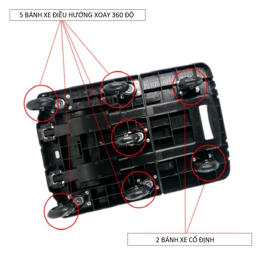Xe đẩy hàng thế hệ mới nhất: Gọn nhẹ - Đa năng - Thẩm mỹ. Là sản phẩm cần có trong mỗi gia đình.- 7 bánh xe chịu lực, 5 bánh xoay 360 độ