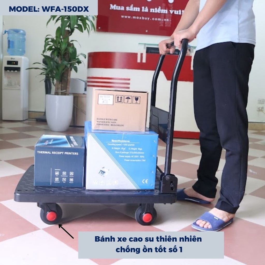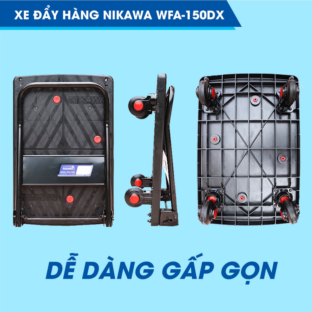 Nhà cửa & Đời sống > Dụng cụ & Thiết bị tiện ích > Xe đẩy || Xe đẩy hàng kéo hàng 4 bánh chống ồn sàn nhựa tay cầm thép 150kg Nikawa , bảo hành 18 tháng, hỏa tốc HN WFA-150DX MAXBUYCòn hàng