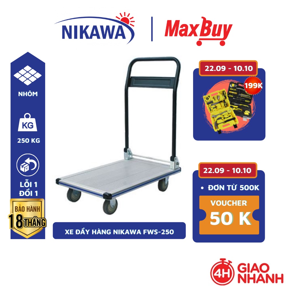 Nhà cửa & Đời sống > Dụng cụ & Thiết bị tiện ích > Xe đẩy || Xe đẩy hàng kéo hàng 4 bánh chống ồn sàn nhôm tay cầm thép Nikawa FWS-250 tải trọng 250kg bảo hành 12 thángCòn hàng
