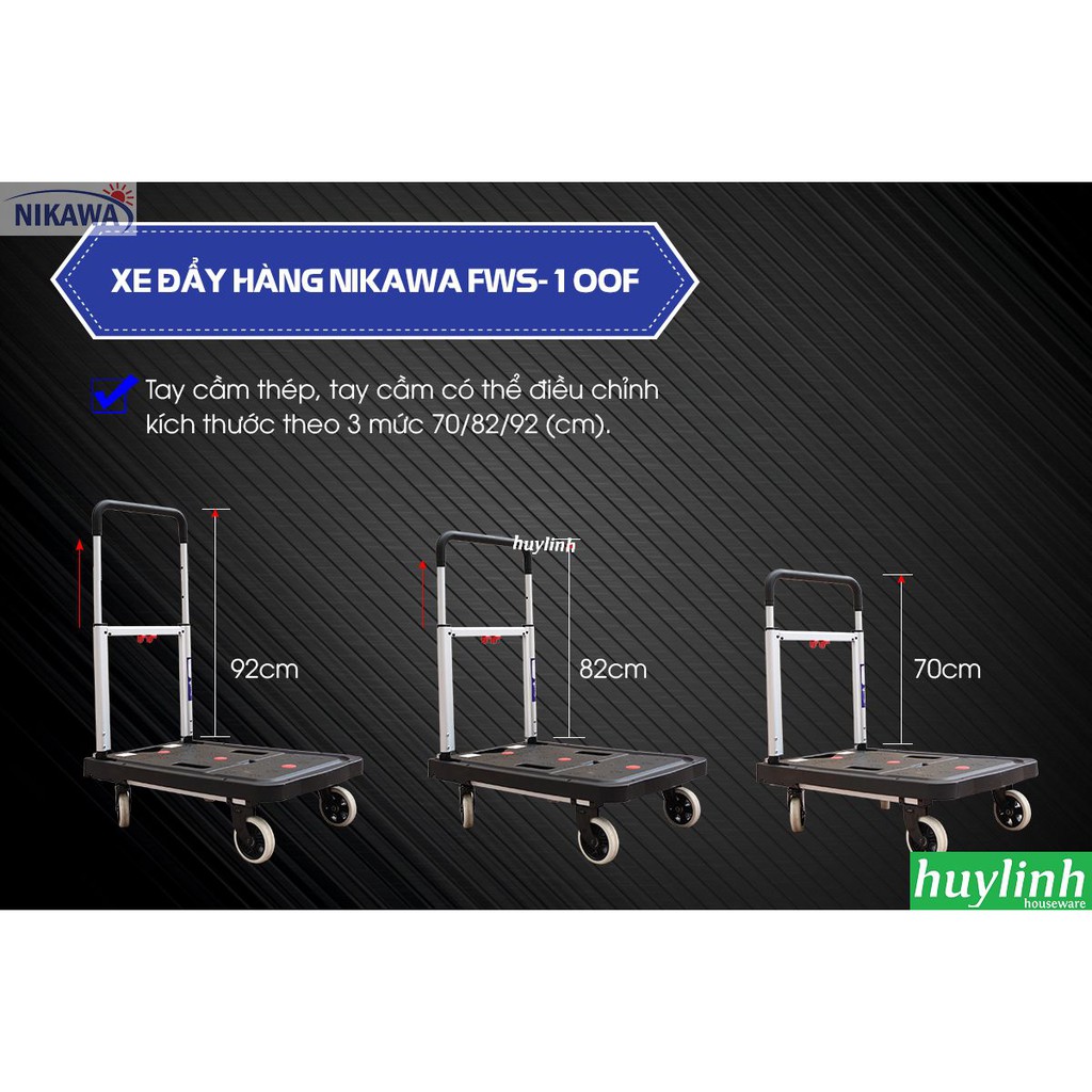 - Xe đẩy Nikawa FWS-100F là sản phẩm được thiết kế đặc biệt với ba mức chiều cao để người dùng có thể thay đổi dễ dàng 70-82-92 cm phù hợp với chiều cao của mỗi người. Tay cầm được làm bằng thép cứng có thể nâng lên hạ xuống với chỉ một lần chạm vào bàn đạp sử dụng lâu dài khi vận chuyển hàng hóa nặng vẫn không bị biến dạng. Đặc biệt, sản phẩm có thể gấp gọn lại, có thể dựng đứng xe và cất giữ mà không chiếm nhiều không gian. Đặc biệt tiện lợi cho gia đình với thiết kế hiện đại.