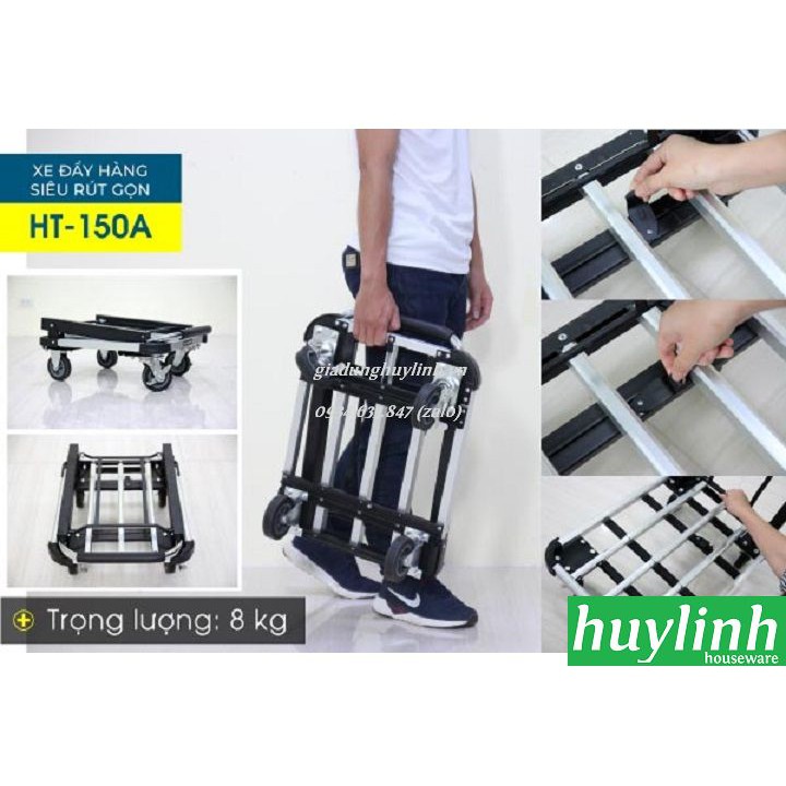 - Với thiết kế tinh tế giúp cho Xe đẩy hàng siêu rút gọn Advindeq HT-150A có tải trọng lên tới 150kg nhưng lại có khả năng rút gọn đáng kinh ngạc, chỉ bằng 1/2 so với các sản phẩm cùng loại tải trọng, dễ dàng mang vác, di chuyển, cất trữ trong các không gian nhỏ hẹp khi không sử dụng.