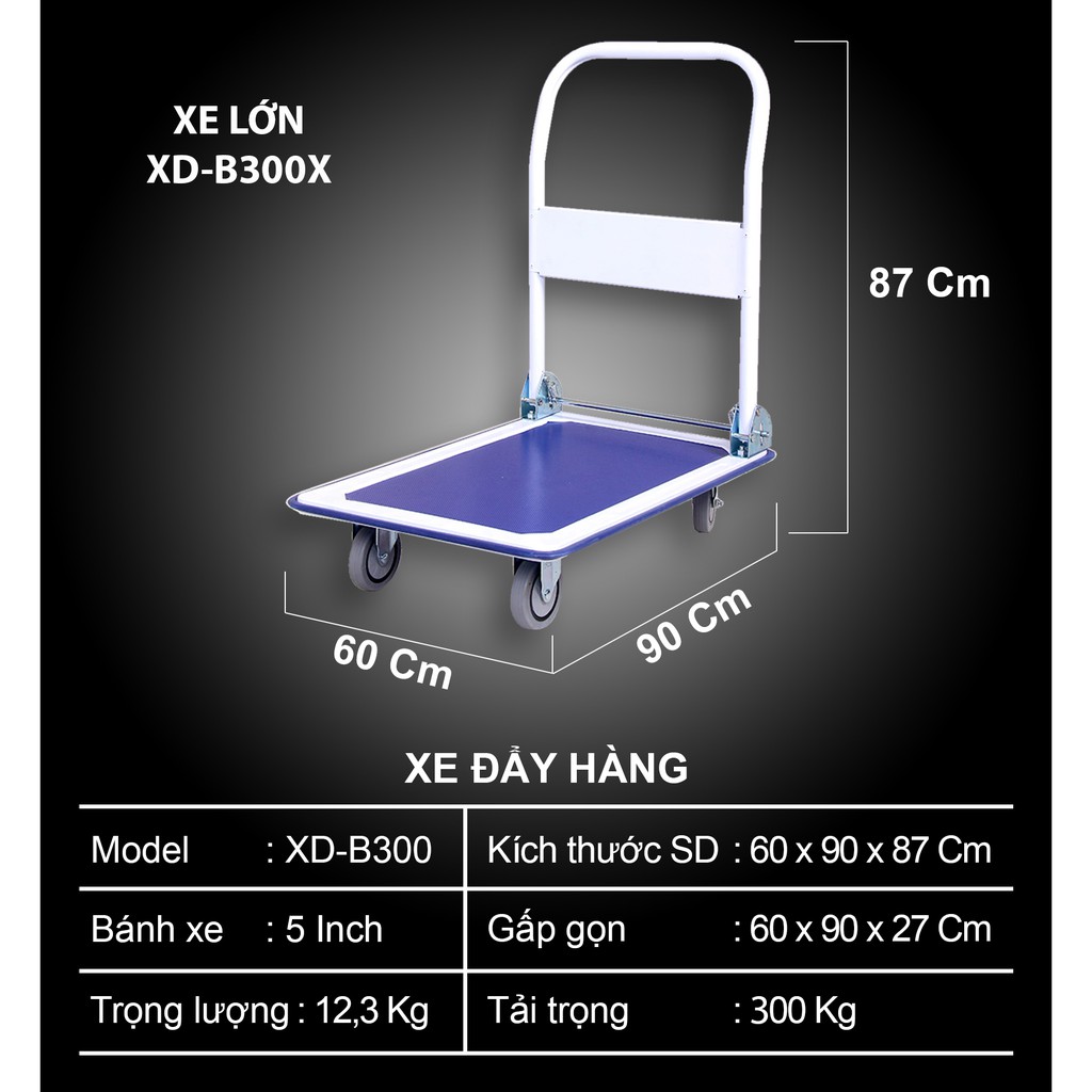 Giới thiệu Xe đẩy hàng sàn kim loại tải trọng 150-300 Kg NIKITA XD-B150.300X