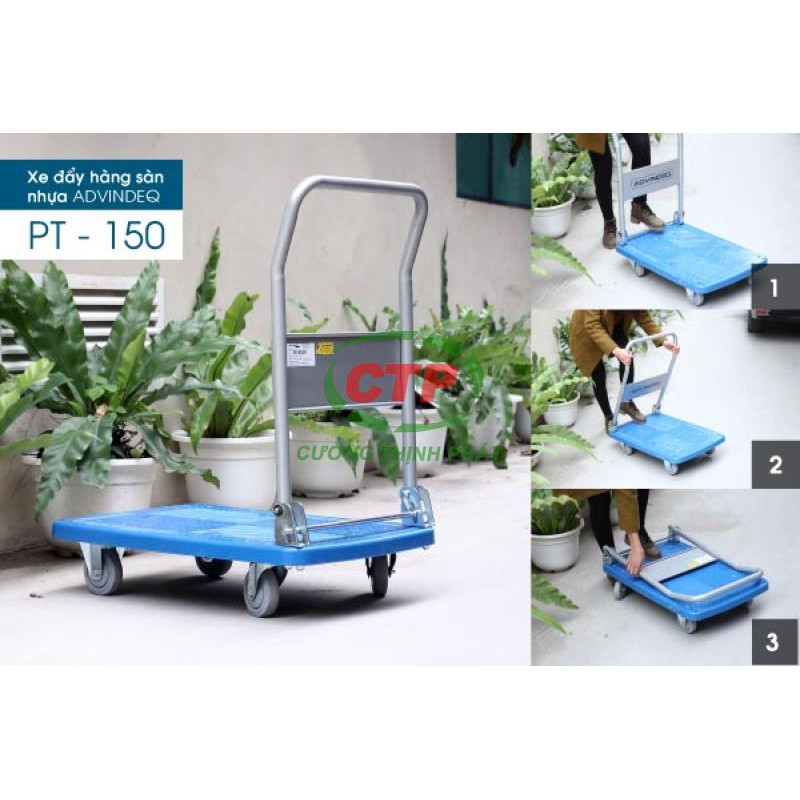 TỔNG QUAN SẢN PHẨM:Xe đẩy hàng sàn nhựa Advindeq PT-150 chính hãng mang đầy đủ các đặc tính nổi trội công nghệ Đài Loan. Kích cỡ nhỏ nhắn chỉ 7.5kg nhưng khả năng chịu tải lên tới 150 ~ 170kg, thiết kế chắc chắn từ thép cao cấp, an toàn và tính cơ động rất cao, hơn nữa còn có thể gấp gọn nhằm tiết kiệm không gian lưu trữ. Xe đẩy hàng sàn nhựa PT-150 là một sự lựa chọn hoàn hảo cho các văn phòng, cửa hàng, nhà kho,…