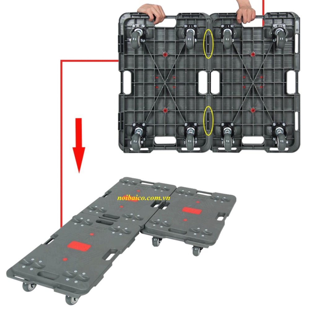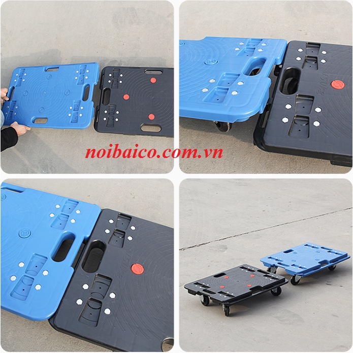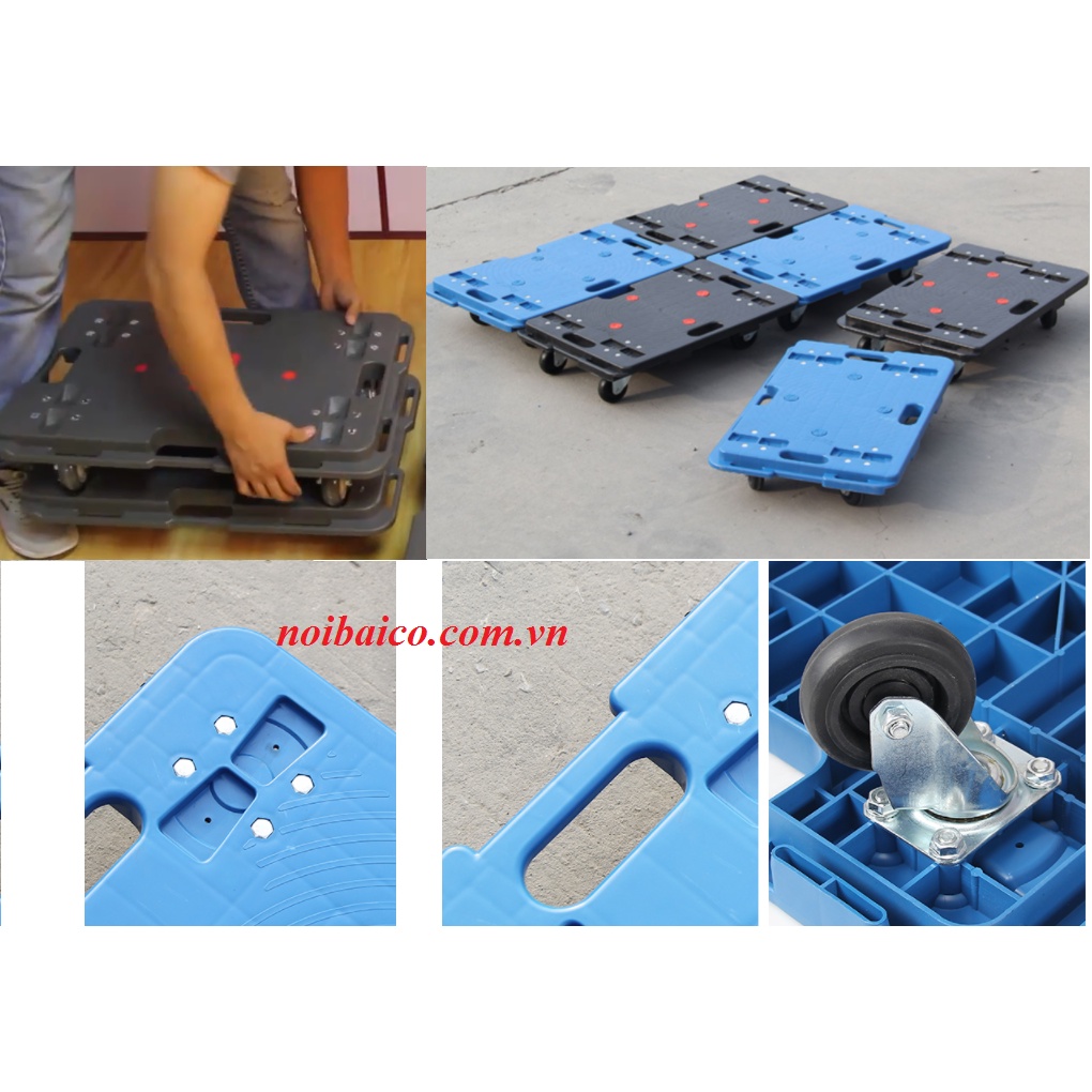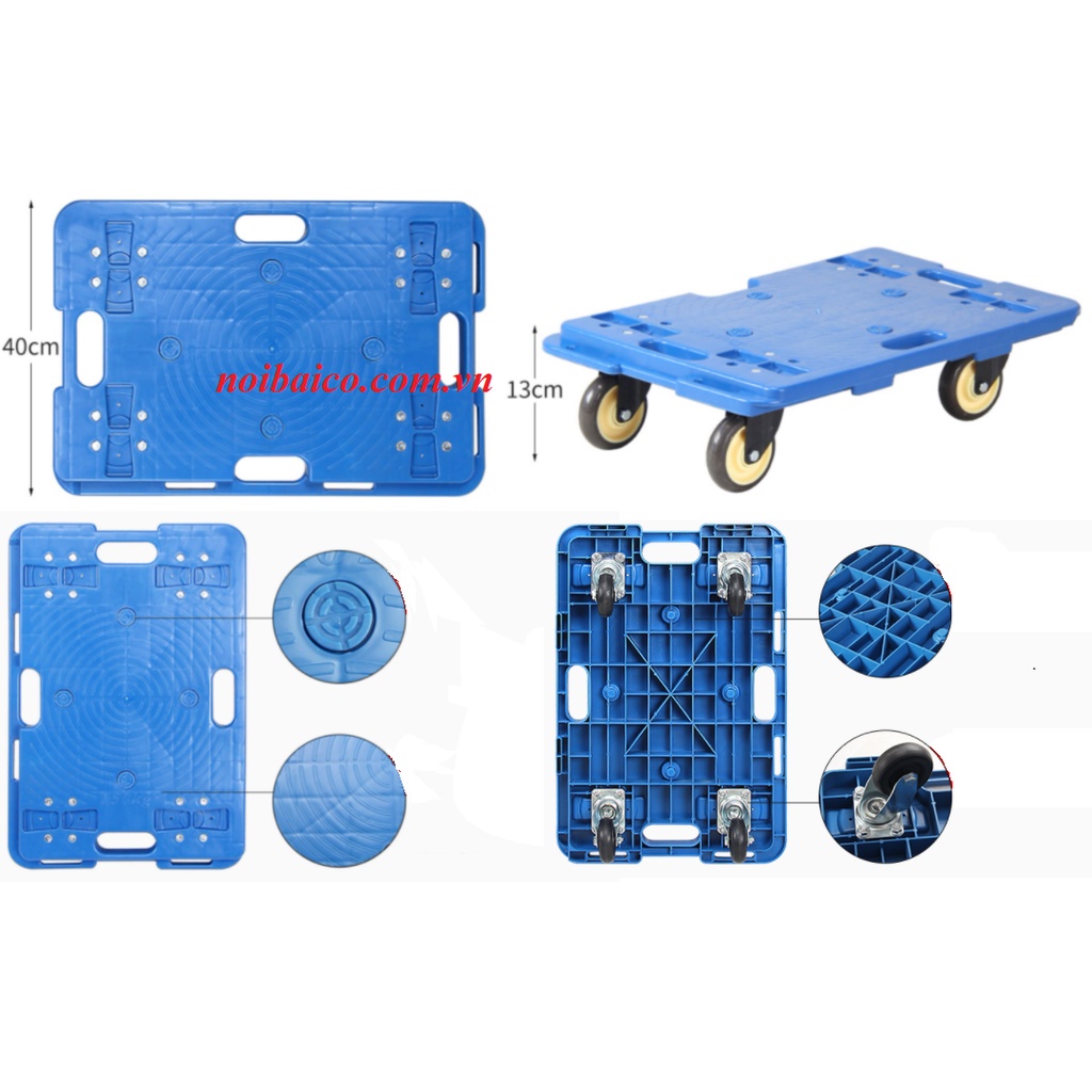 Sàn đẩy nhựa có 4 bánh xe xoay di chuyển ở mọi địa hình.