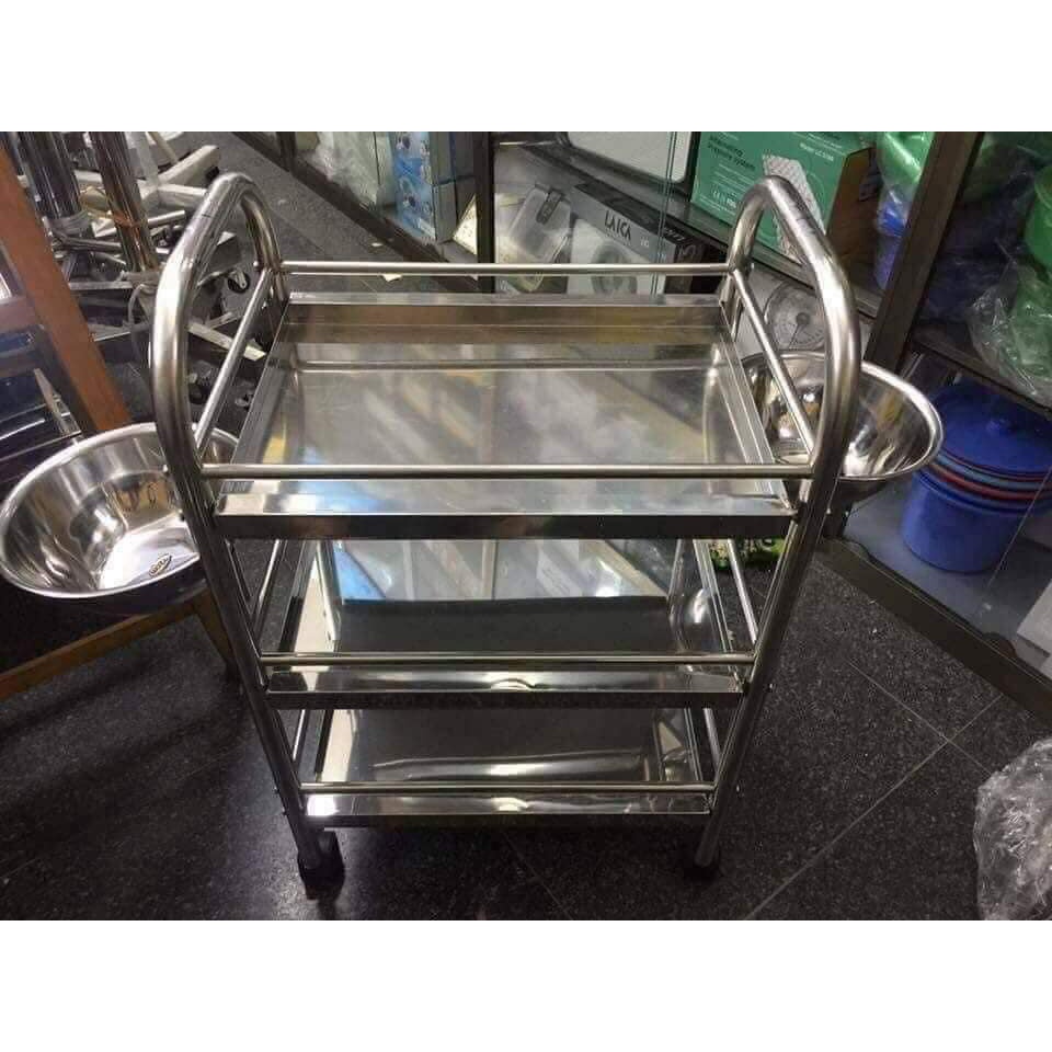 Nhà cửa & Đời sống > Dụng cụ & Thiết bị tiện ích > Xe đẩy || Xe đẩy inox 3 tầng 2 bát nước cho spa, tmvCòn hàng