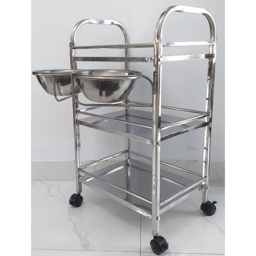 Nhà cửa & Đời sống > Dụng cụ & Thiết bị tiện ích > Xe đẩy || Xe Đẩy inox 3 Tầng Spa Có Bát Nước , Xe Đẩy inox Đựng Dụng Cụ 3 Tầng. Kệ inox SpaCòn hàng