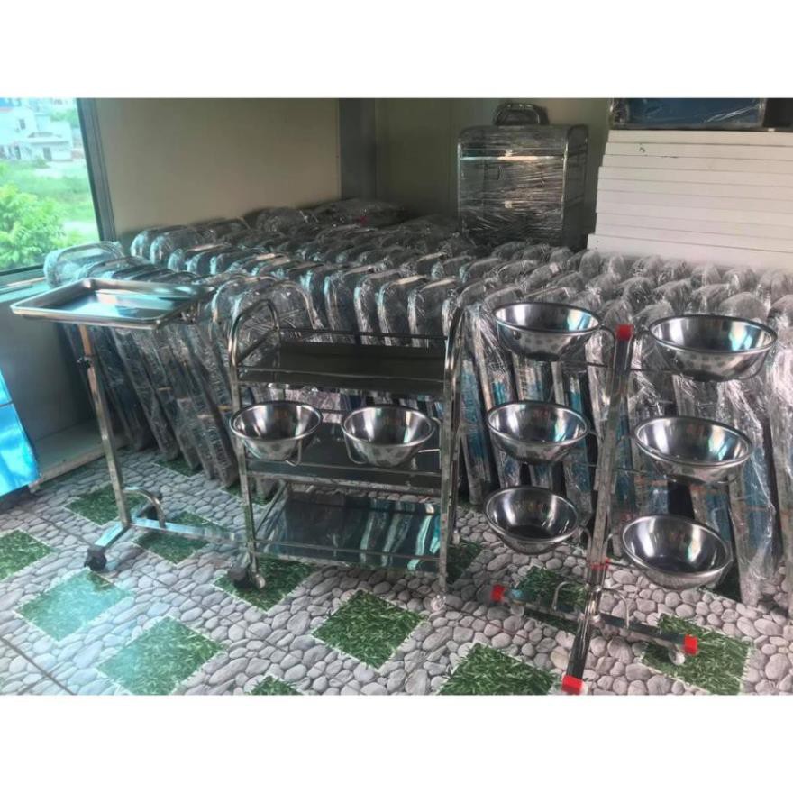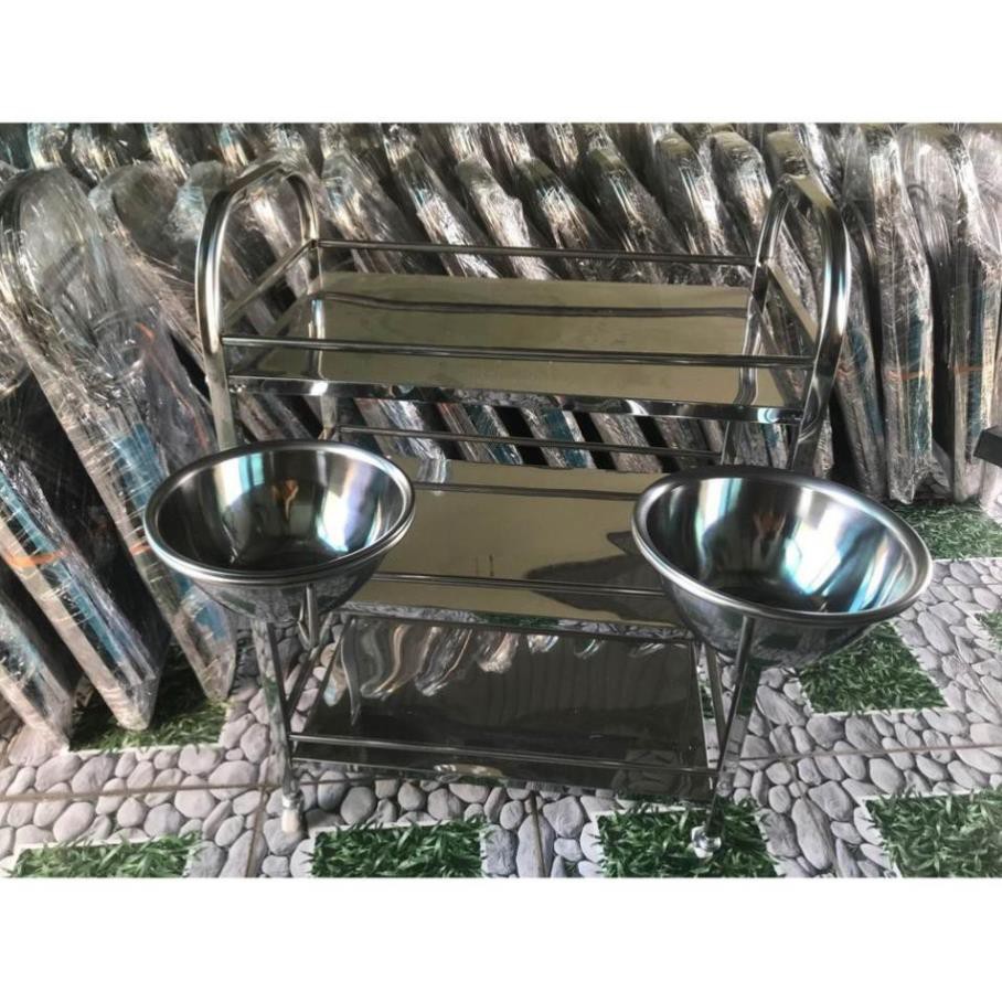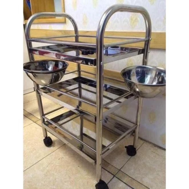 - Xe đẩy inox 3 tầng 2 bát nước dùng trong spa