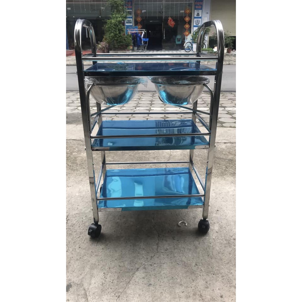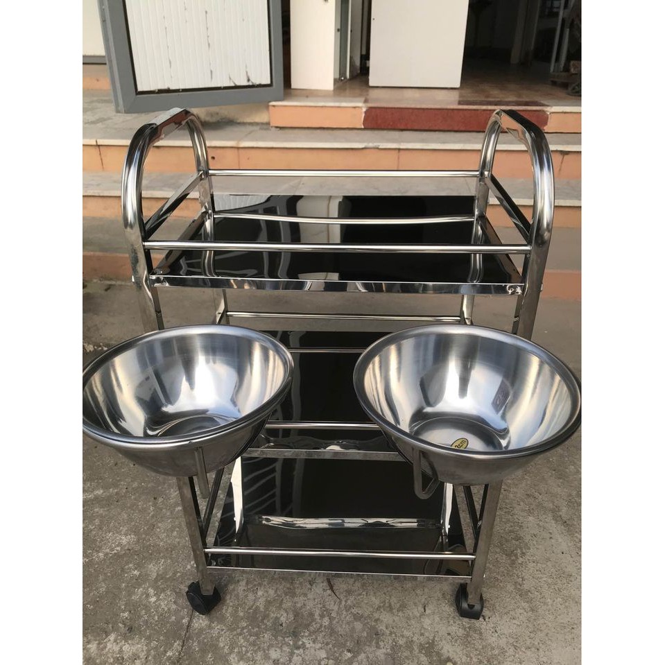 - Xe đẩy inox 3 tầng 2 bát nước dùng trong spa