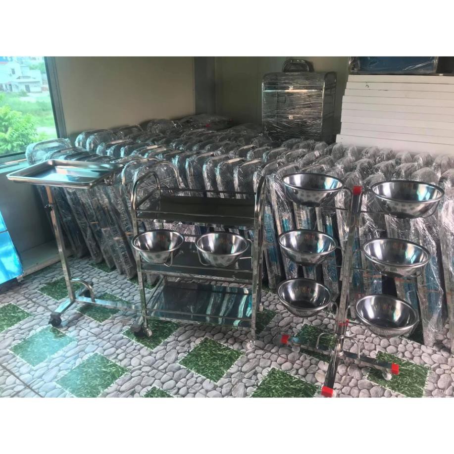 - Xe đẩy inox 3 tầng 2 bát nước dùng trong spa