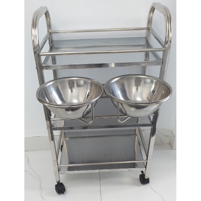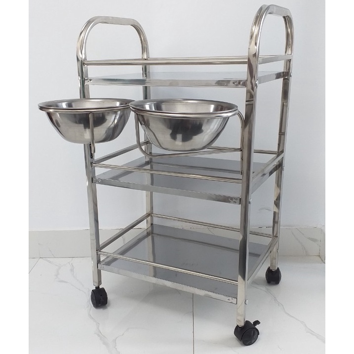 Xe đẩy inox spa 3 tầng đa năng kệ để đồ inox kèm 2 bát to cho spa thẩm mỹ viện