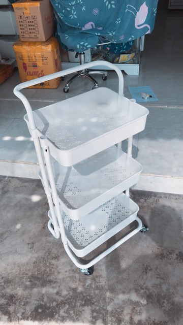 Xe đẩy, kệ để đồ 3 tầng shop sẵn hàng 2 màu:_ Màu trắng