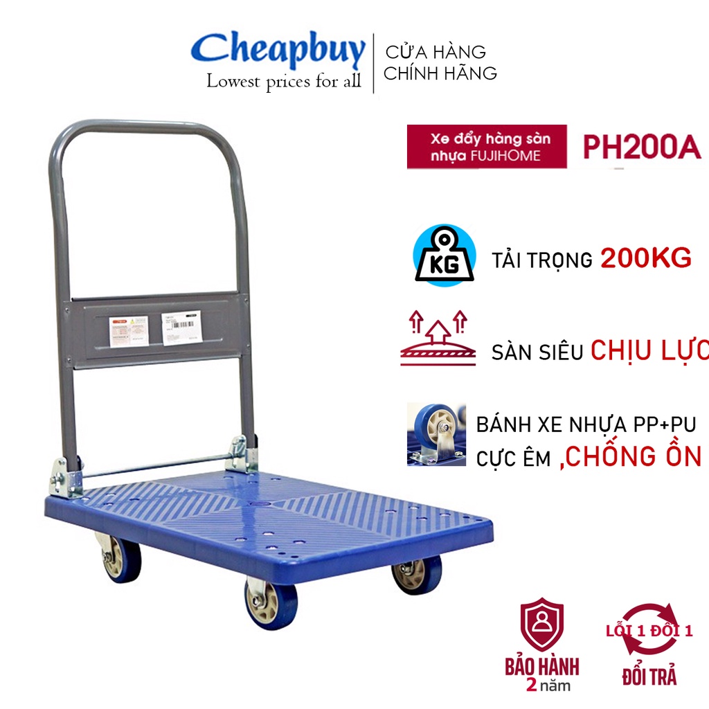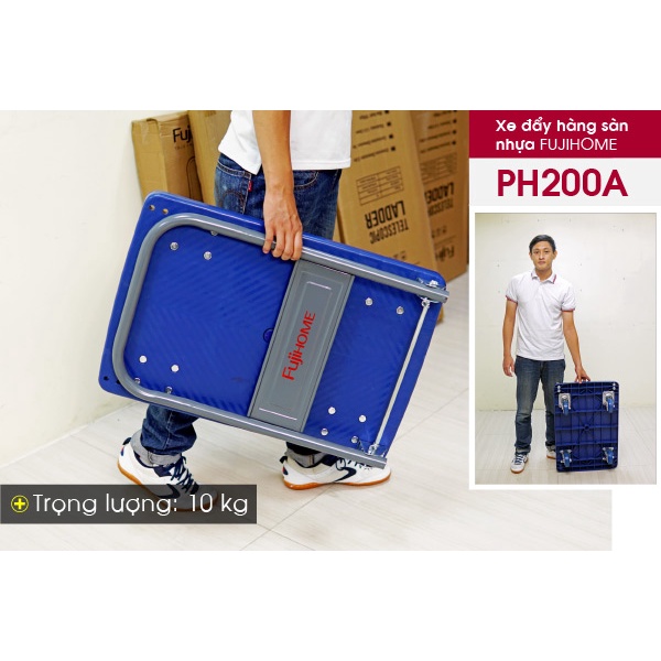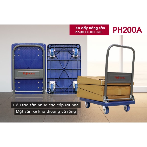- Xe đẩy hàng sàn nhựa FUJIHOME PH200A là dòng sản phẩm mang đến nhiều tiện ích cho người sử dụng và đáp ứng được nhu cầu vận chuyển hàng hóa nặng, thiết kế của sản phẩm chắc chắn, độ bền cao.