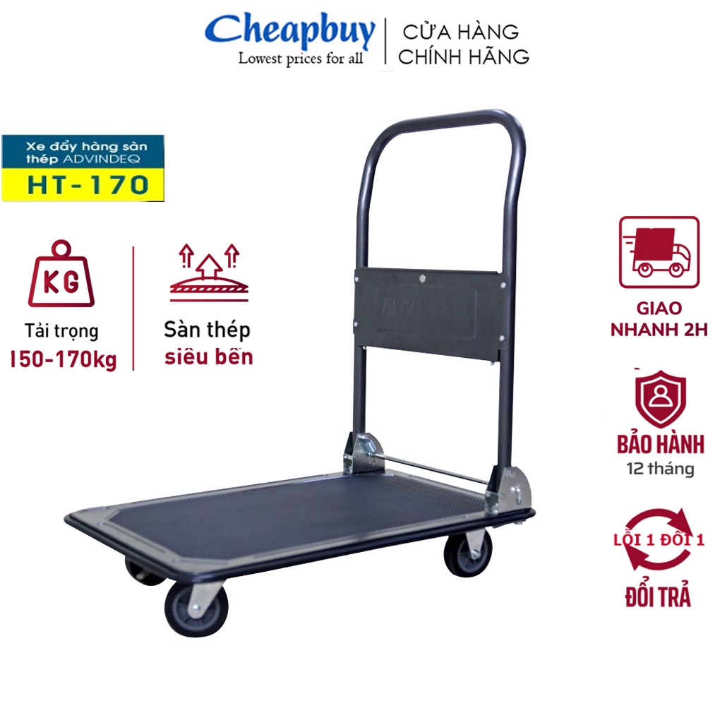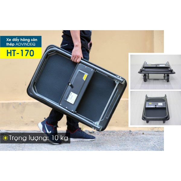 Nhà cửa & Đời sống > Dụng cụ & Thiết bị tiện ích > Xe đẩy || Xe đẩy kéo hàng 4 bánh gấp gọn chở 150kg nhập khẩu Advindeq HT-170, Sàn sắt phủ hammertonne chống gỉ xước - BH 1 nămCòn hàng