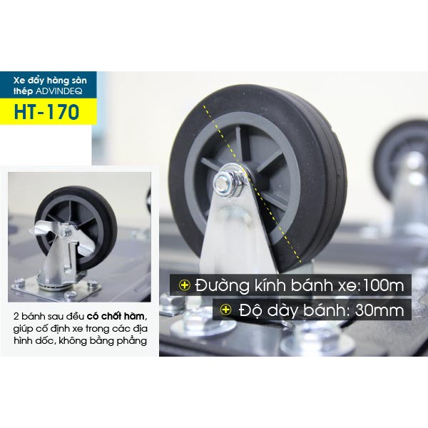 🌈 1. Xe đẩy hàng 4 bánh sàn thép phủ nhám ADVINDEQ HT-170