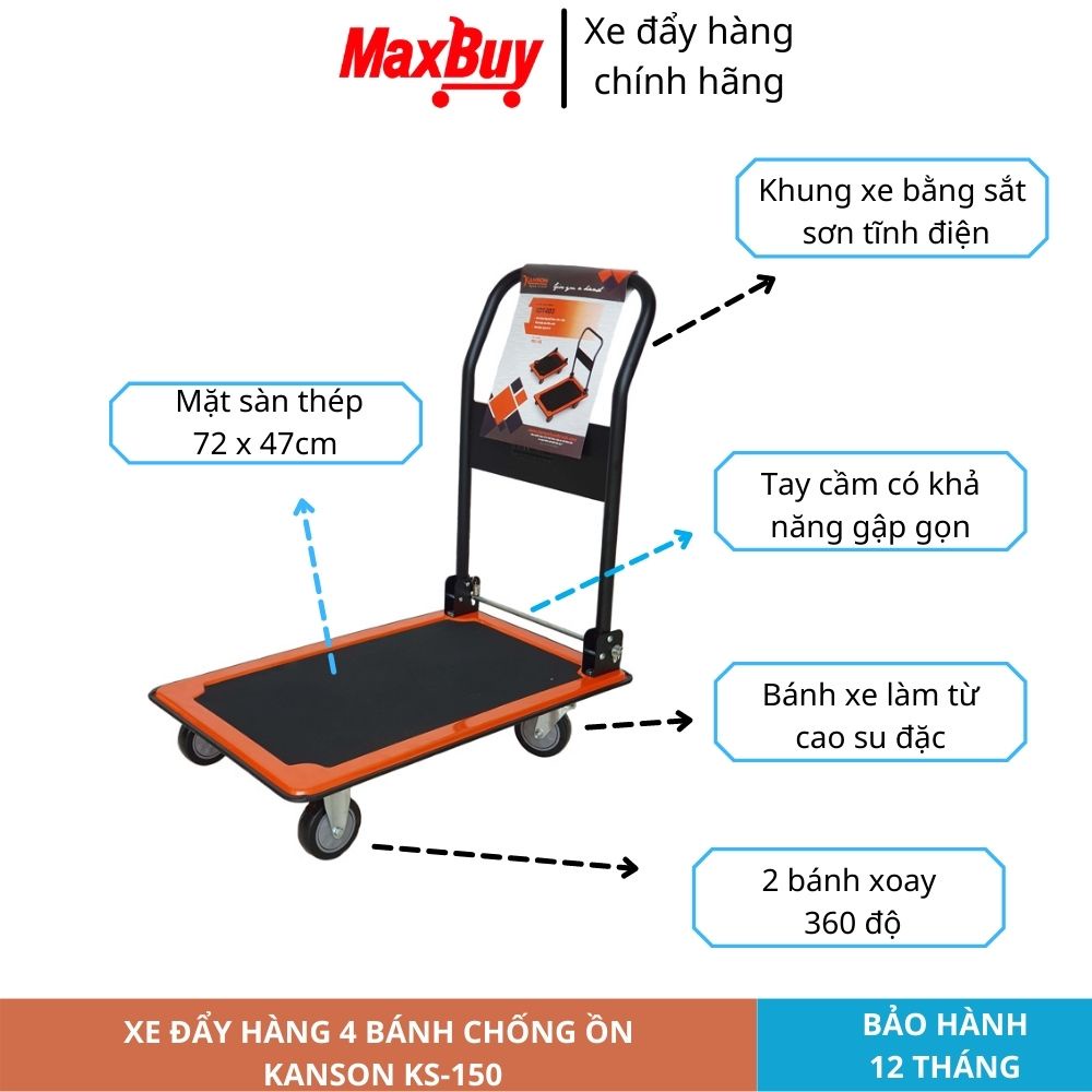 Thông số kỹ thuật của xe đẩy hàng 4 bánh Kanson KS150 (MHL009):