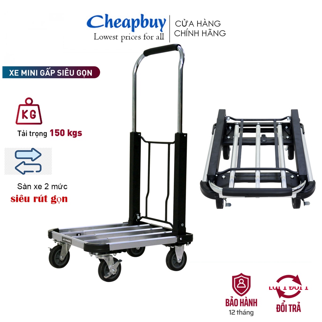 ✅ Xe đẩy hàng 4 bánh siêu rút gọn, tải trọng lớn ADVINDEQ HT-150A - HÀNG NHẬP KHẨU BẢO HÀNH 1 NĂM✅