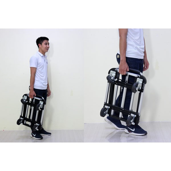 - Đây là loại xe đẩy hàng linh hoạt và rất tiện cho các cửa hàng, kho hàng, doanh nghiệp có khu lưu trữ xe đẩy nhỏ. Tay xe thiết kế gấp lại khi không sử dụng nên người sử dụng dễ dàng cất giữ trong gầm cầu thang, gầm tủ, gầm kệ hàng thậm chí cả trong gầm giường nếu cửa hàng quá nhỏ.