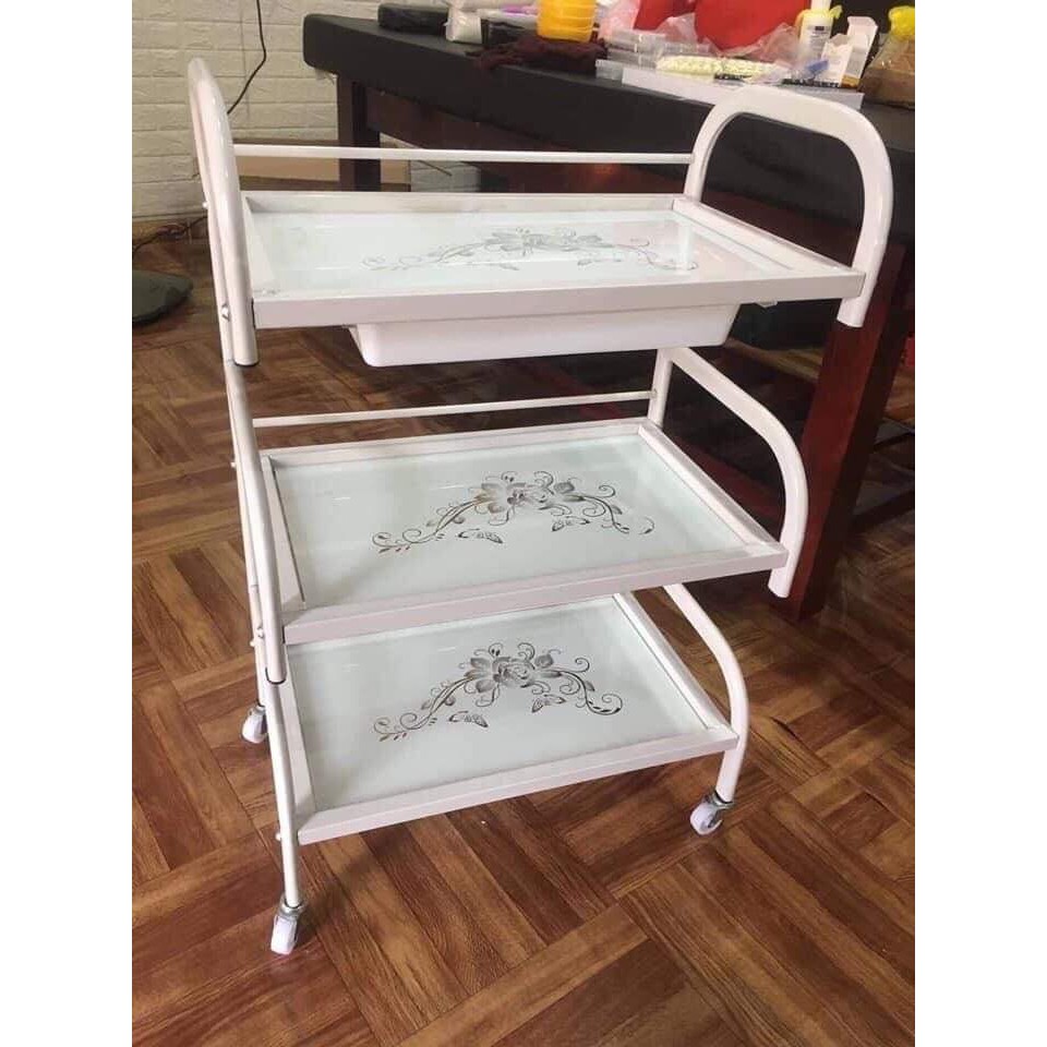 ✔️Với thiết kế 3 tầng rộng rãi, thích hợp để đc nhiều dụng cụ và thiết bị chuyên dụng trong các spa, thẩm mỹ viện, salon tóc, tiệm nối mi, nail chuyên nghiệp hiện nay.✔️Tầng trên cùng còn có thêm 1 ngăn kéo nhỏ có thể đựng các vật dụng nhỏ gọn.