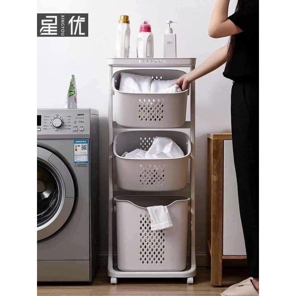 Với thiết kế chắc chắn, tinh tế & có 4 bánh xoay 360 độ giúp di chuyển dễ dàng, xe để đồ giặt 2 là sản phẩm lí tưởng giúp mẹ để quần áo bẩn và các đồ dùng khác một cách sạch sẽ & lịch sự cũng như vận chuyển dễ dàng đến nơi cần giặt.- Chất liệu: Nhựa PP cao cấp rất dày dặn & chắc chắn.