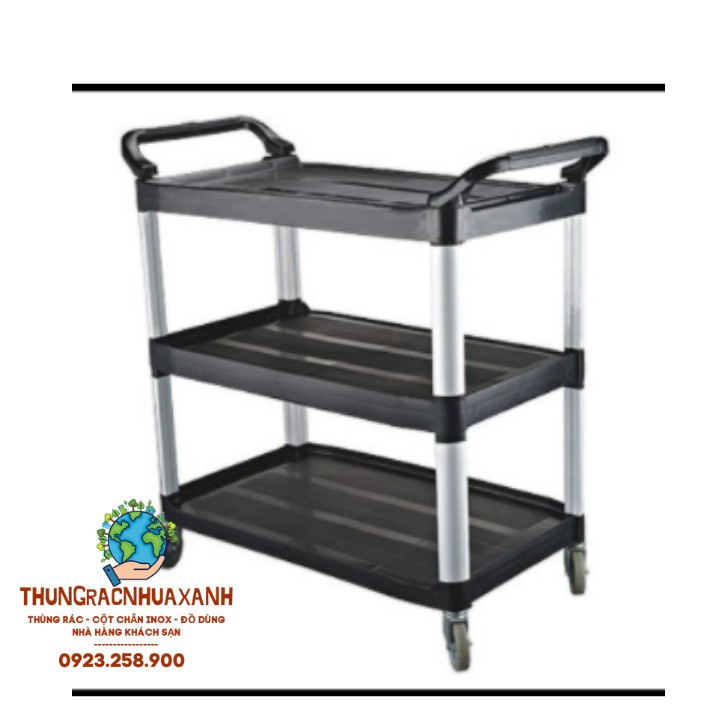 Nhà cửa & Đời sống > Dụng cụ chăm sóc nhà cửa > Chậu, xô & gáo nước || XE ĐẨY PHỤC VỤ BÀN ĂN - XE ĐẨY DỌN DẸP BÀN ĂN NHÀ HÀNG CHẤT LIỆU NHỰA CAO CẤP MÀU ĐEN L010B(KHÔNG XÔ)Còn hàng