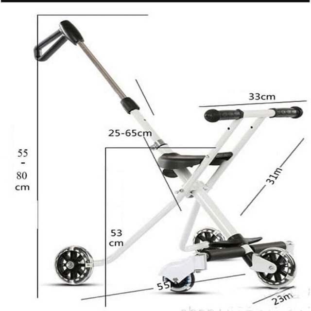 👉Bộ khung được làm từ hợp kim nhôm rất nhẹ và chắc chắn - Bánh xe và yên xe được làm từ nhựa PU có độ bền cao và rất an toàn cho sức khỏe 👉Chiều dài tay đẩy có thể thay đổi gúp cho việc đẩy bé đi dạo suốt cả quãng đường dài mà không bị mỏi vai hoặc lưng...