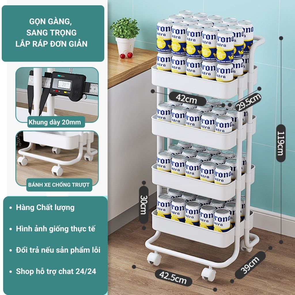 - Kệ được thiết kế 3,4,5 tầng có bánh xe giúp việc di chuyển tiện lợi dễ dàng, quay ngang bánh khi không muốn xê dịch.