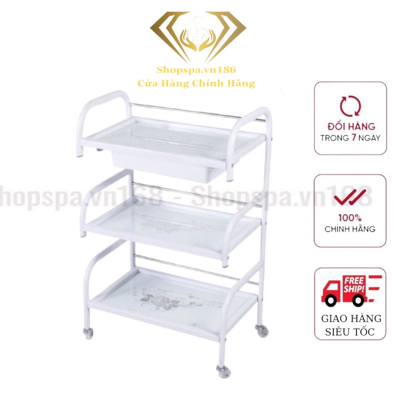 Nhà cửa & Đời sống > Dụng cụ & Thiết bị tiện ích > Xe đẩy || Xe đẩy Spa 3 tầng mặt kính hoa văn có khayCòn hàng