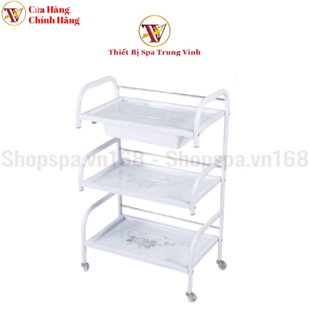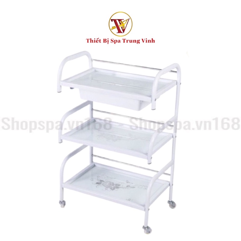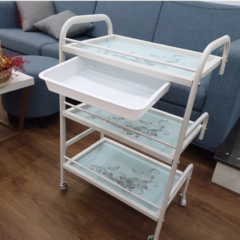 Xe đẩy Spa 3 tầng mặt kính hoa văn có khay